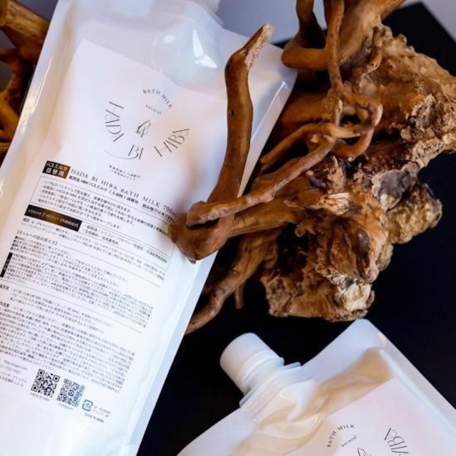HADA BI HIBA ハダビヒバ お得なバスミルク詰替700mL 青森ヒバの天然成分を配合した入浴剤〔約23回分〕 ___________________________ ・いつものバスタイムで肌を整え、皮膚を健やかに保ちます ・お風呂に混ぜ入浴する事で肌に潤いを与え皮膚の保護と乾燥を防ぎます。 ・天然青森ヒバ精油とベルガモット精油の香りで疲れを癒します。 ・シルクエキス配合でお肌に潤いを与ます。 ・海水のミネラル配合でお肌のすべすべ感をキープします。 ___________________________ *200Lのお湯にキャップ1杯 (約30ml) を目安に入れてお使いください。 *ベビーバスには5ml程度を入れてお使いください。 *赤ちゃんから敏感肌の大人の方まで安心してご使用いただけます。 是非お試しください。 成分:水・デキストリン・酸化チタン・シルクエキス・1,2ヘキサンジオール・ヒバ 油・海塩・炭酸水素・グリセリン・ペンチレングリコール・水酸化レシチン・PEG-40水添ヒマシ油・PEG-60水添ヒマシ油・ベルガモット果実油